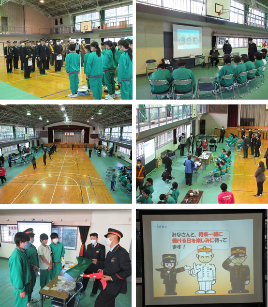 11月17日(金)、東武鉄道職員20数名をお招きして、キャリア教育に係る学習をおこないました。体育館において、運転・工務・営業・清掃・電気の5つのブースに分かれて、各仕事の説明を聞いたり体験をしたりしました。生徒は、地域に関連の深い職業について学び、自らの生き方や職業に対する意識を高めていました。東武鉄道職員の皆様、貴重なお話や体験をありがとうございました。