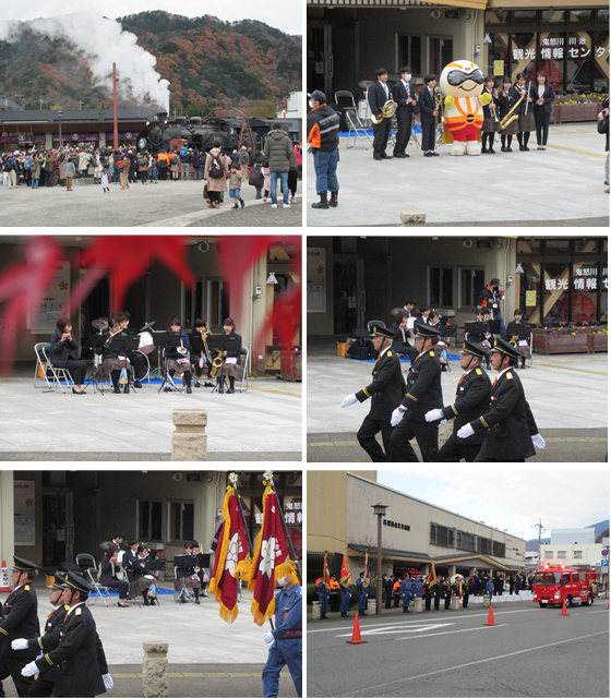 11月26日(日)、観光客で賑わう鬼怒川温泉駅前で、藤原消防団分団行進が行われました。本校の吹奏楽部の演奏に合わせて、各分団員の行進の後、消防車がパレードを行いました。曇天の寒空の中でしたが、多くの地域の方々や観光客から注目を集めました。3年生が引退し、部員6名と教員1名の少人数で力強い演奏を披露しました。
