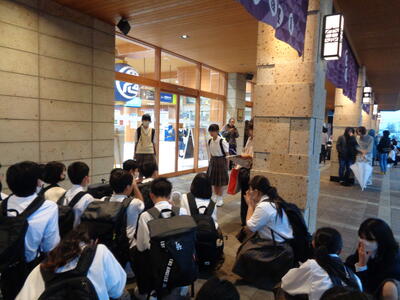 7月17日(木)(本校は、第1、3木曜日に朝カフェを実施)は、今学期ラストとなる朝カフェでした。夕張メロン味のバームクーヘンや防災パンなどが並びました。一番人気は、前PTA会長 小又様より差し入れがありましたかにパンでした。日頃より、本校にお心を寄せていただき感謝申し上げます。また、PTA会長、副会長様にもお出でいただき嬉しく思います。「今回は、チーカマあまり人気ではなかったね」「オレンジジュースとリンゴジュースは人気ね」といった、生徒応援団の皆さまの声もいただきました。日光子ども応援隊の皆さま、更生保護女性会の皆さま、日光ソロプチミストの皆さま、地域の皆さま、本当にありがとうございます。