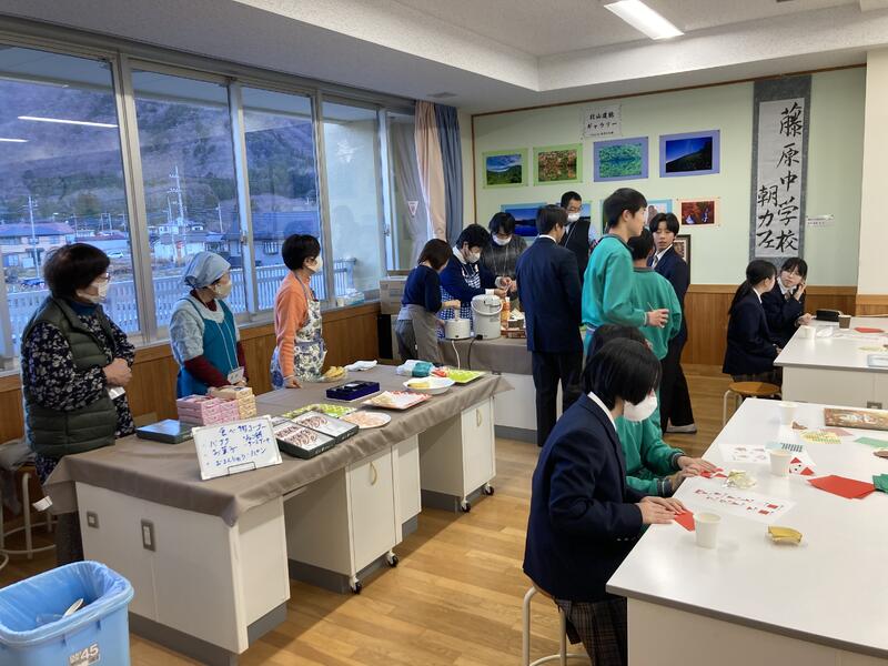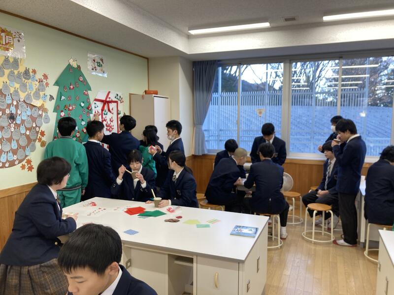 12月4日(木)朝カフェを実施いたしました。12月ということで、壁面の掲示物もクリスマスにちなんだものを、朝カフェ利用者で賑やかに作成しました。上都賀教育事務所の大橋先生、宮田先生も参加していただき,雪の降った藤原中の朝のひとときを共有しました。日頃よりお世話になっている日光子ども応援隊の皆さま、更生保護女性会の皆さま、日光ソロプチミストの皆さま、地域より藤原中を応援してくださっている皆さま、足もとの悪いなかありがとうございます。