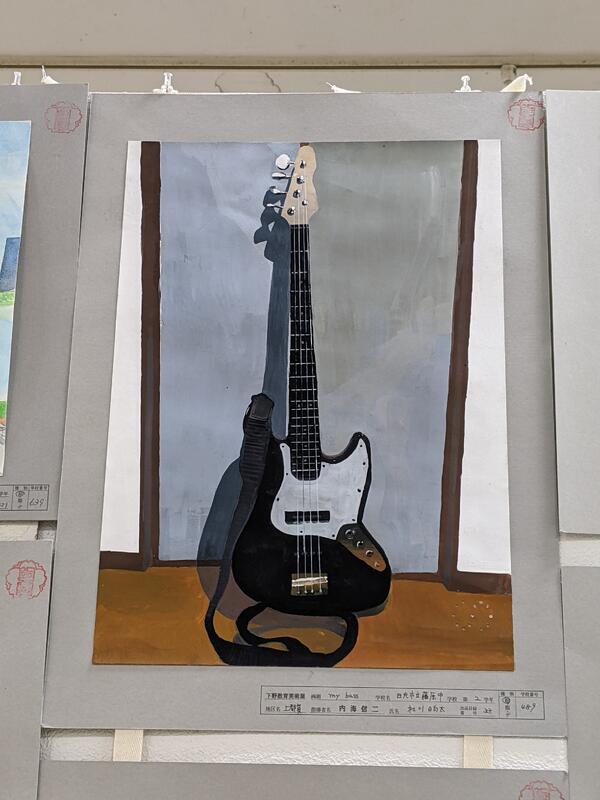 2年生 西田向葵さん 銀賞:絵画「あじさい坂」、2年生 平間稔梨さん 銅賞:絵画「昔からみてきた風景」、2年生 社川日向太さん 銅賞:絵画「my bass」です。おめでとうございます。