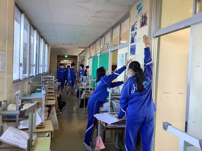 3月5日(木)から、3年生は特別日課で奉仕作業や卒業式練習、学年レクなどを実施しました。6日(金)は、県立高校一般入試を無事終えてホッとした中、校庭でレクを楽しむ姿が見られました。