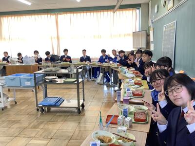 3月9日(月)、午前中に卒業式予行を行い、明日の卒業式に備えました。3年生は東原中学校最後の給食を、机を丸くしてクラスメートと語らいながら食べていました。明日の卒業式は保護者やご来賓の方に、3年生の成長した姿を見せられたらと思います。よろしくお願いします。