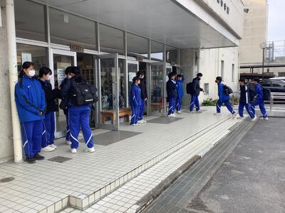 今週から、今年度最後の生徒会ごとのあいさつ運動を実施しています。今回のテーマは「有終の美~今年度を締めくくる気持ちのよいあいさつ~」です。登校時間の10分間、昇降口に立って、あいさつを呼びかけました。