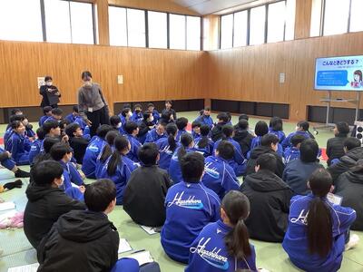 11月19日(水)の昼休みに地震発生を想定した避難訓練を行いました。今回は予告なしの実施でしたが、生徒はそれぞれの場所から判断し、速やかに避難していました。交通委員からの話では、災害に必要な考え「自助・共助・公助」の話がありました。