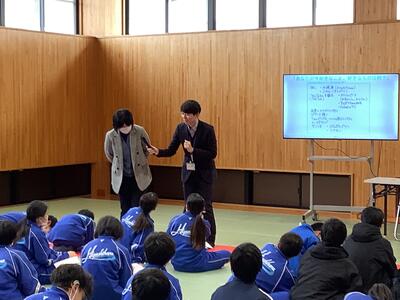 2月10日(火)、1年総合学習において、おおぞら高校の先生をお招きし、「みらいの描き方講座」が行われました。今後の出張マイチャレンジに向けて、自分の未来は自分で決めることの大切さ、自分や相手の価値観を知ること等について貴重な学びとなりました。