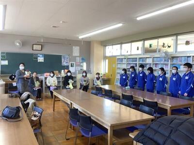 2月19日(木)には図書委員会が「図書ボランティアさん感謝の会」を開催し、ボランティアさん達に感謝の気持ちとお花等を送りました。これまで長期間にわたり図書室整備の活動をしていただき、大変ありがとうございました。
