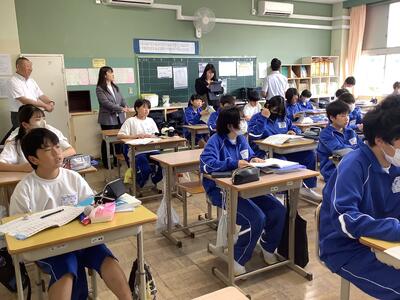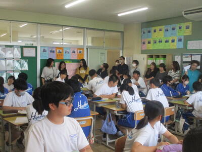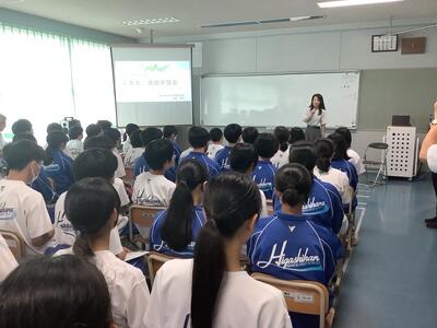 12月11日(木)6校時、2年生で「ココロカラダ教室~生まれてきてありがとう~」と題した親子講演会を行いました。助産師さんから思春期の体と心の変化についてお話を聞いた後、赤ちゃん人形を抱っこしたり、妊婦体験を行ったりしました。いのちの大切さをしっかり考えた時間となりました。