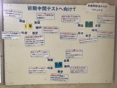 12月3日(水)後期中間テストが行われました。どの学級も集中してテストを受ける生徒の真剣な様子が見られました。テストの結果を受けて、今後の学習にいかしてほしいと思います。