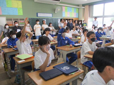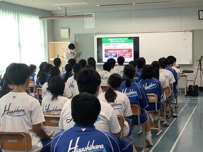 12月8日(月)放課後に生徒集会を行いました。人権週間にちなんだ活動を担当教員が行った後、福祉委員会がペットボトルキャップの回収と赤い羽募金について呼びかけました。何のために募金が使われるか等、わかりやすく説明がありました。その後、放送委員や選挙管理委員会からのお知らせがあり、生徒はよく話しを聞いていました。