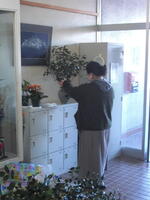 学校ボランティアさんが、玄関に花を生けてくれました。