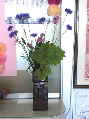 学校ボランティアさんが玄関に秋の草花を生けてくれました。