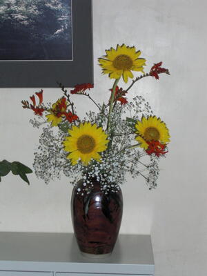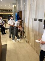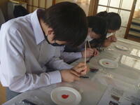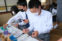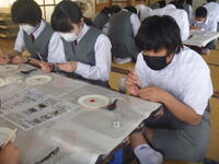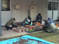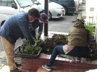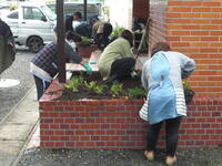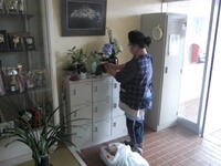 ボランティアさんが来校し、生徒と一緒に玄関に花を生けました。