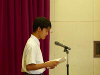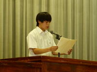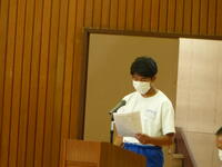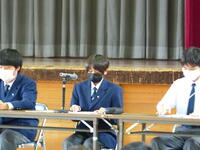 東原中代表として、3年生が出場しました。題は「インターネットのモラル」です。