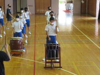 竹、カラーコーン、ボール、ペットボトル、体操用マットなど全力で取り合いました。