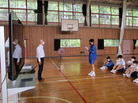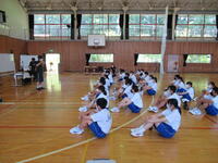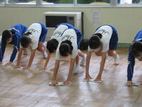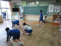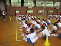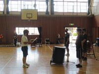 2年 学級活動「生活班でのジェスチャーゲーム」 柔道場にて