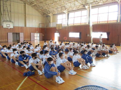 「1学期の成果と課題は何だったか?」 生徒一人一人に語りかけました。