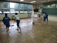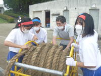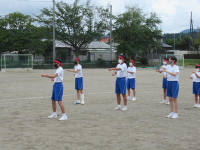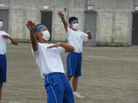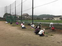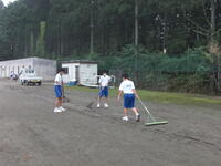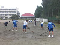 PTA会員のみなさんと生徒により、運動会に向け校庭整備を行いました。
