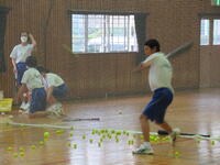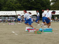 それから玉入れ。高得点のピンポン玉、フリスビーをかごを目がけて投げました。