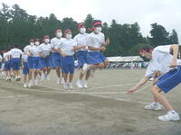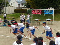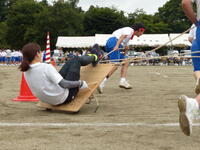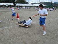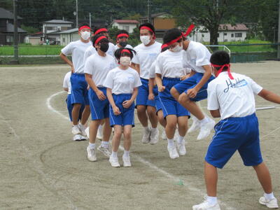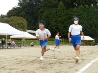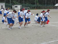 二人三脚(借り人付き)・ムカデのリレー、練習の成果を発揮しました。