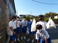 学年ごとに作業場所を決めて、校庭の除草と石拾いを行いました。