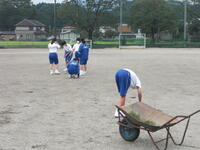 運動会に向けて、親子で校庭の整備をしました。