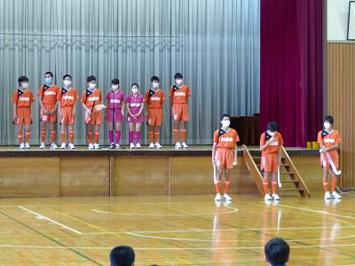 男子ホッケー部 全国大会準優勝報告会 部長から全校生徒に報告がされました。