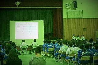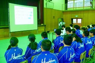 生徒会役員の進行により、部活動紹介が体育館で実施されました。どの部活動紹介も部長を中心に、とても立派な発表でした。1年生は、先輩方の姿を見て、どの部活動でも安心して活動できると思ったことでしょう。生徒会役員の皆さん、各部の2.3年生の皆さん、大変ご苦労様でした。