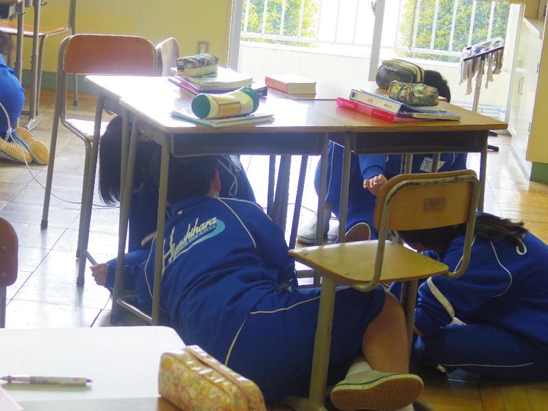 Jアラート、その後火災が起きたという想定のもとでの訓練でした。サイレンに生徒達は緊張して訓練に臨んでいました。