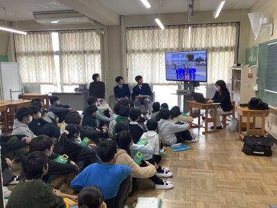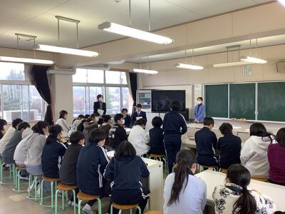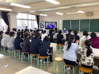 3月2日(月)・3日(火)、東原中学校区の今市小学校と今市第三小学校において、来年度の新入生を対象に生徒会役員が新入生ガイダンスを行ってきました。中学校生活への不安が少しでも解消できるようにと、スライドや動画で学校生活行事や部活動の様子を紹介したり、東原中学校に関するクイズを行ったりしながら、ガイダンスを行いました。4月のご入学を心よりお待ちしています。