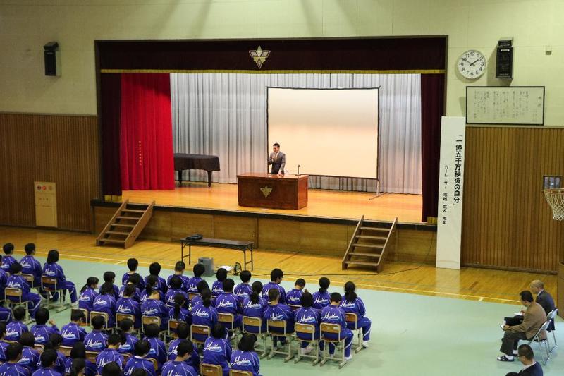 本校卒業生、塚越広大さんの講演をお聞きしました。演題は「1億5千秒後の自分」です。夢を持つことの大切さ、命がけのレース等。生徒からはたくさんの質問が、本校生徒のために、スーパーカーのエンジンの音まで聞かせてくださいました。来年のシーズンにはますます御活躍ください。