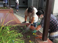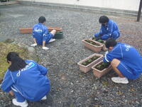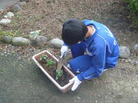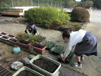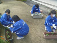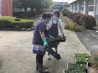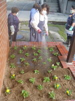 学校ボランティアと美化委員会のコラボ活動で、パンジーの苗を植えました。