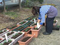 準備してくれたプランターに、花苗をしっかり植え、水をやりました。