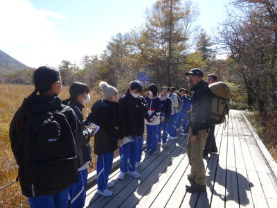 奥日光の戦場ヶ原にて、自然体験学習を行いました。日光自然博物館のガイドさんに説明を受け、日光の大自然を肌で感じながら散策しました。