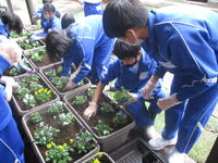 学校ボランティアさんと美化委員でパンジーを植えました。