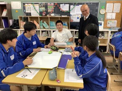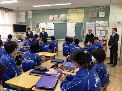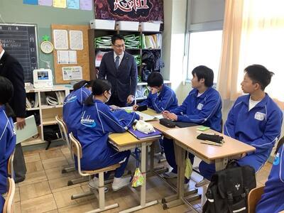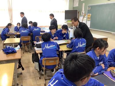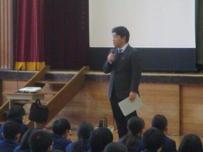 1月13日(火)、3年社会の授業で日光市議会「議会報告会」を実施しました。市議会より議長を含む7名の議員さんが来校され、3年1組、2組の教室に分かれて授業を行いました。議員さんの自己紹介や議会活動の説明があった後、議員となって人口を増加させる取組を市に提案するというグループワークを行いました。生徒からは「商業施設や飲食店を誘致する」「子育て支援をする」等、活発な意見が出されました。市の未来を当事者となって考える充実した学習となりました。日光市議会の皆様、ありがとうございました。