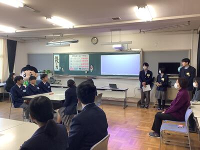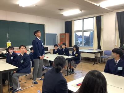 12月16日(火)放課後、生徒会役員のメンバーが今市高校を訪問し、今市高校の生徒会役員と交流をさせていただきました。高校生から高校生活についてクイズを交えながら説明があり、その後グループで情報交換をしました。高校生のしっかりとした様子に刺激を受け、短い時間でしたが多くのことを学べた交流会となりました。