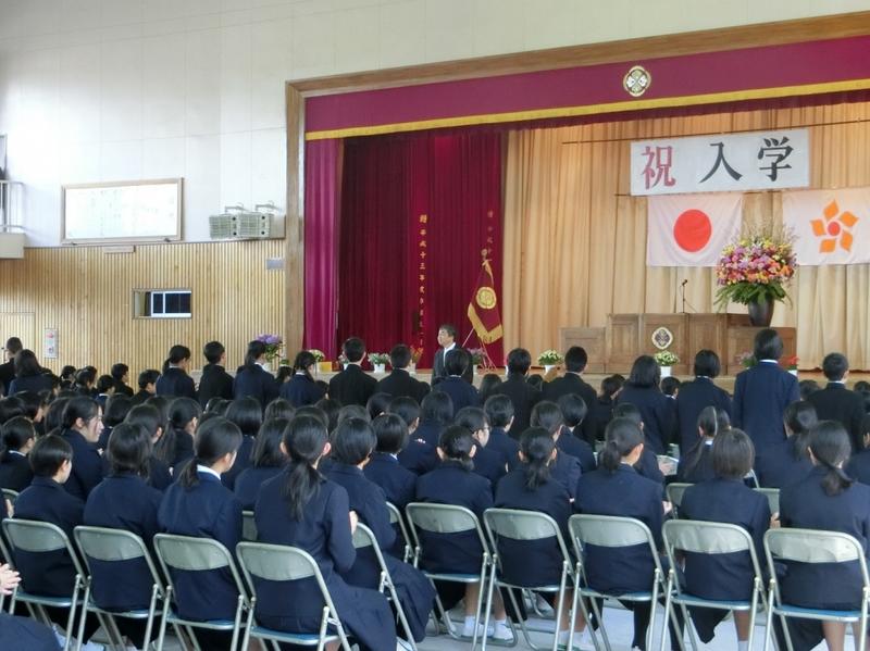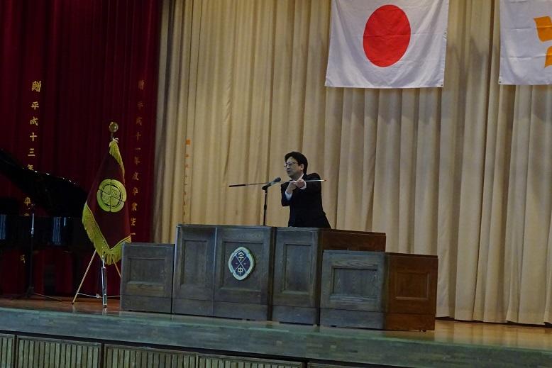 生徒会役員から今年度のスローガン「日進月歩 ~切り拓け希望の新時代~」が発表され、令和元年度、今市中学校生徒会が本格的なスタートを切りました。