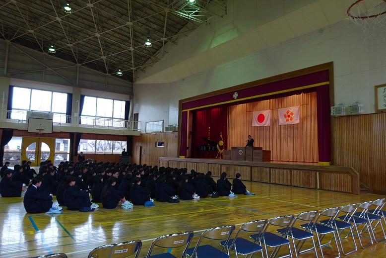 地震を想定した避難訓練を実施しました。ご承知の通り1949年(昭和24年)の今市地震で登校中の本校生徒が亡くなっています。(現東原中学区)午前8時17分と24分のM6.2とM6.4の地震は死者10名、全半壊3284棟(一部資料では6209棟)という災害になりました。