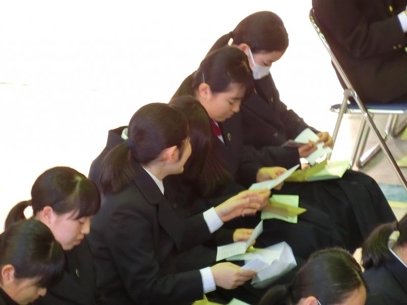 生徒の代表たちは、手作りマスクを手紙と共にプレゼントしていました。返礼の髙森会長の挨拶もなかなか感動のものでした。学校長が「私もほしい」と述べて会を笑顔に導いて終了しました。