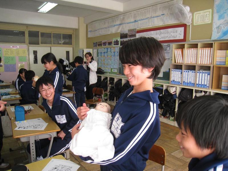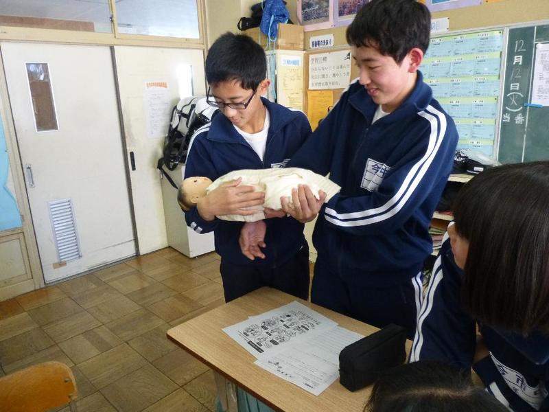 また、赤ちゃんを抱っこする活動では、頭を肘でしっかり支え、おしりに手を当て安定させながら赤ちゃんを大切にリレーしていく等、体験を通して命の大切さを意識させました。