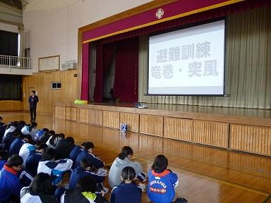 4校時避難訓練を実施しました。今回の目的は「竜巻発生時の対処について,基本的な知識と行動を身に付けること」でした。