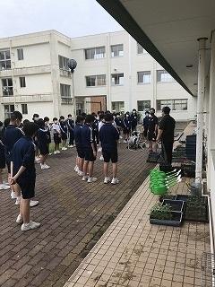 生徒会組織に環境委員会という委員会があります。今年は臨時休業中に職員で種を蒔き苗を育てました。その苗を生徒と共に花壇に植え付けをすることができました。マリーゴールドの黄色サルビアの赤が目に浮かぶようです。たのしみ、たのしみ。生徒のみなさん、先生方、お疲れ様でした。【2020,7,18】