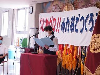 舞台裏はこんな感じです。放送委員がカメラワークを担っています。始業式は、発表者が確認できるようにモニターを追加します。短い夏休みですが、生徒のみなさん有意義に過ごしましょう。