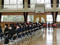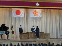 卒業生と、保護者1名、在校生代表が参加し卒業式が行われました。在校生の多くは、教室からリモート配信を見て参加しました。昨年度から卒業生ひとりひとりに、学校長から直接証書を手渡しています。どの生徒も思いを込めて壇上に上がり、証書を受け取って巣立っていきました。