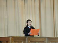 学校長より、修了証書をクラスごとに代表生徒へ手渡しました。元気に返事をするクラスが多く、来年度が楽しみです。