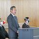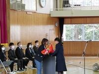 離任職員紹介のあと、生徒から離任者への言葉と花束贈呈が送られました。