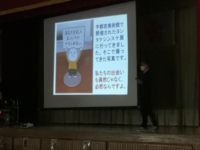 学校長式辞では、「時間をかけて」というテーマで話がありました。坂村真民氏、後藤静香氏、中村清氏の詩や言葉を紹介しながら「焦らずに、力をつけていこう」「夢と希望を持って、自分の意志で、自分の力で切り開いてほしい」ことなど紹介しました。