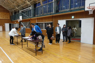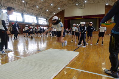 その後、全校生が体育館に集合し、直井様からお話をいただきました。不審者に対しての距離感、手やランドセルをつかまれたときの対応、「いかのおすし」等を丁寧に教えていただきました。校長先生の話では、不審者もそうですが最近報道で話題となっている熊のことも取り上げ、「自分の命は自分で守る」ようにとお話ししてました。