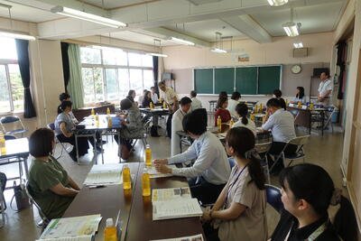 まず、身近な税として「消費税」を取り上げ、私たちはいろいろな税を負担していることを教えていただきました。次に、アニメDVDを視聴し、「税金のない世の中」がどんな世の中なのかイメージをつかみました。